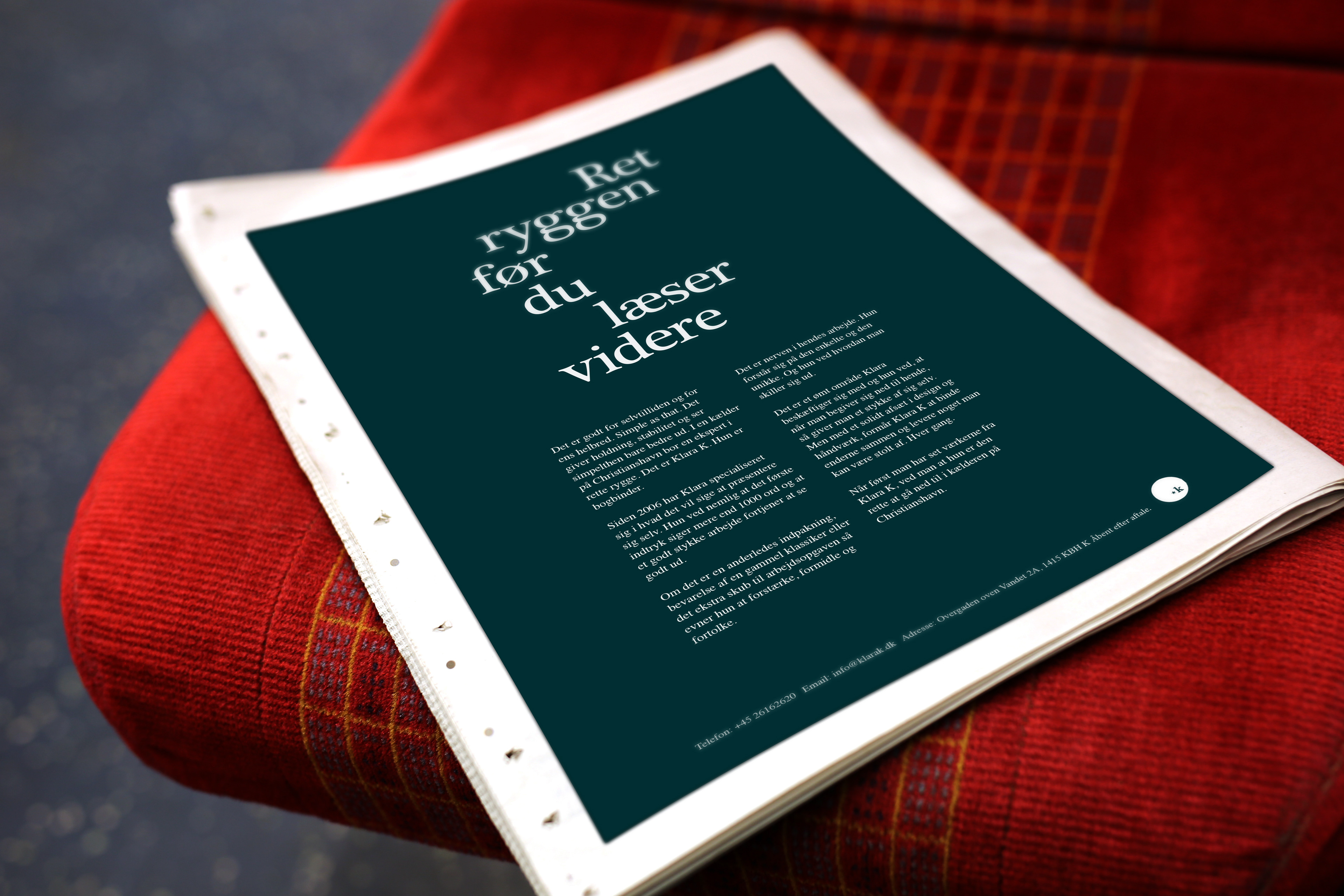 Print ad for a Danish bookbinder